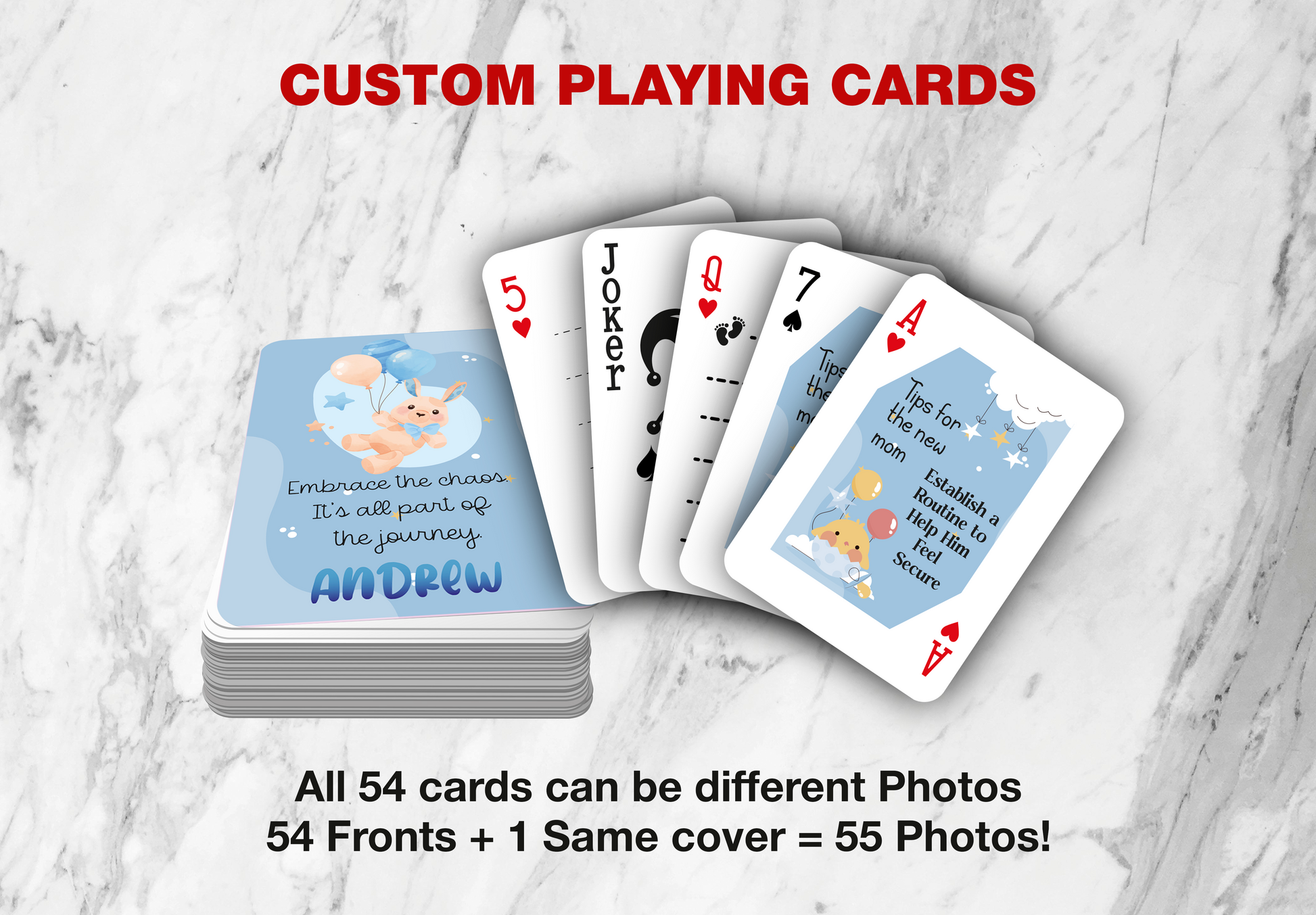 This deck of playing cards can be personalized with any photos or design you have.