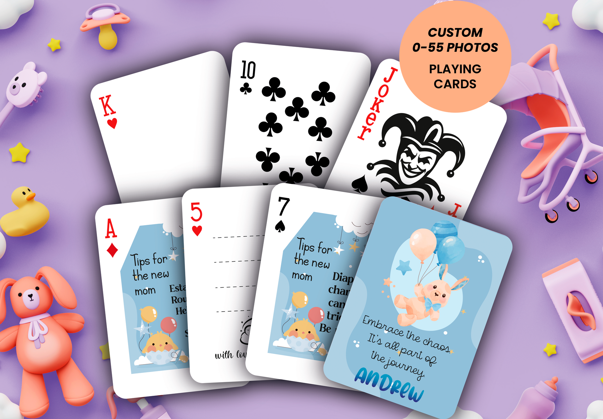 👶 Celebrate the arrival of your little one with our custom Baby Shower Playing Cards Guest Book! 🎴 Each card is a blank canvas 📝, ready for your guests to write their heartfelt wishes 💕, advice 🌟, and memories 🧸. With adorable baby-themed designs 🍼, this unique guest book adds a playful touch to your special day 🎈. Personalize the cards with the baby’s name or shower date for a keepsake you'll treasure forever ✨. Perfect for creating lasting memories with family and friends! 🎀