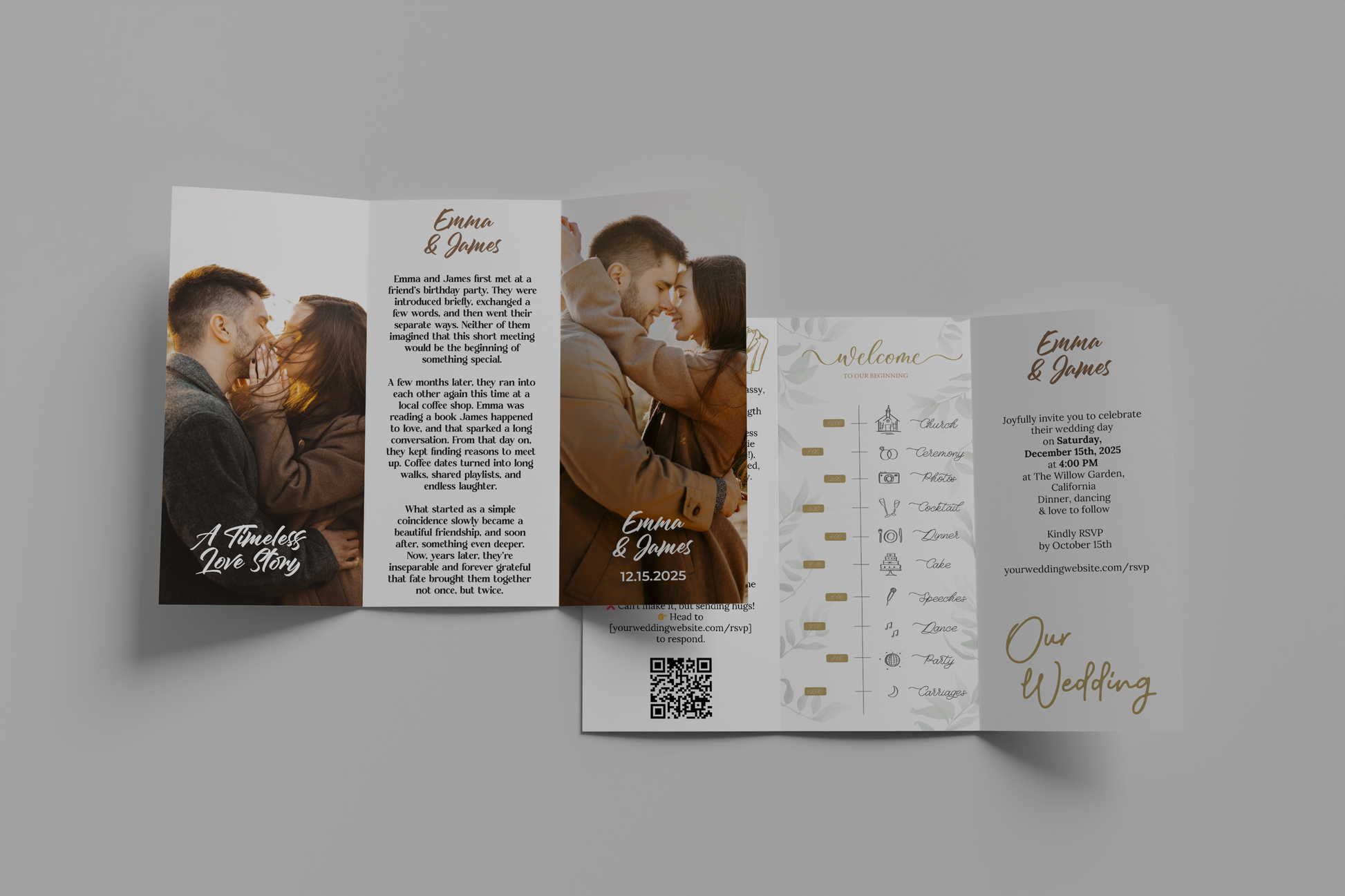 Whether your celebration is modern, romantic, minimalist, or classic, our Free Graphic Design Service ensures your brochure feels cohesive, refined, and truly personal.