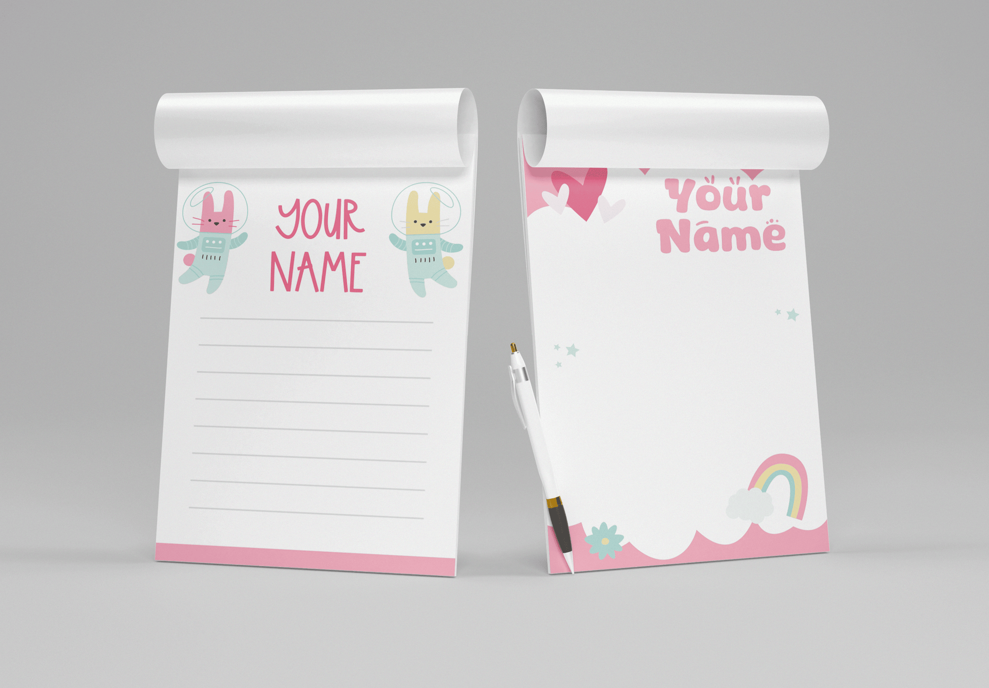 Elevate your stylish with our custom Girly Notepad – a practical tool for everyday notes, or office use. Professionally designed and personalized with your name, contact info, or slogan.