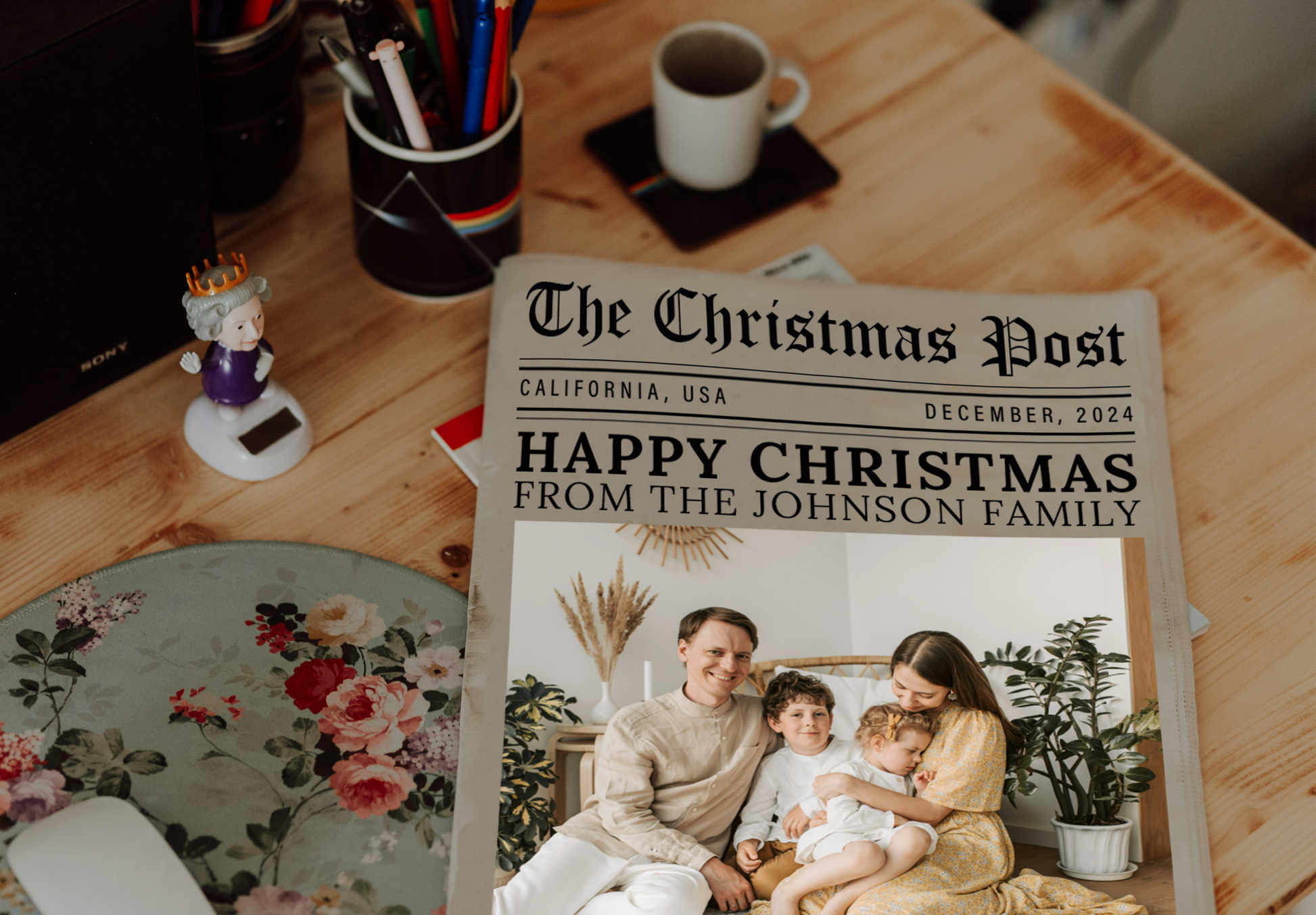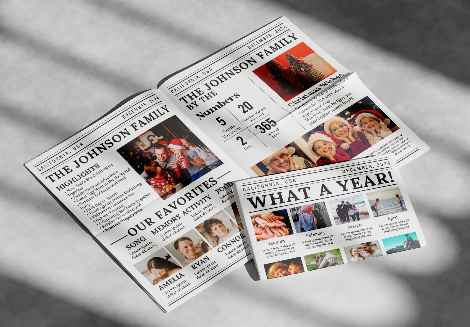 🎄✨ "Our custom Christmas newspapers are the perfect way to add a unique and personal touch to your holiday celebrations! Whether you're looking to share family memories, fun holiday updates, or highlight special moments from the year, these custom newspapers are designed to capture the festive spirit 🎅🏼🎁. Each edition can be fully personalized with your own stories, photos, and holiday greetings, making it a cherished keepsake for family and friends ❤️📸. Ideal for spreading cheer, our Christmas newspapers offer a nostalgic twist to your holiday season, beautifully printed with high-quality paper ❄️📰."