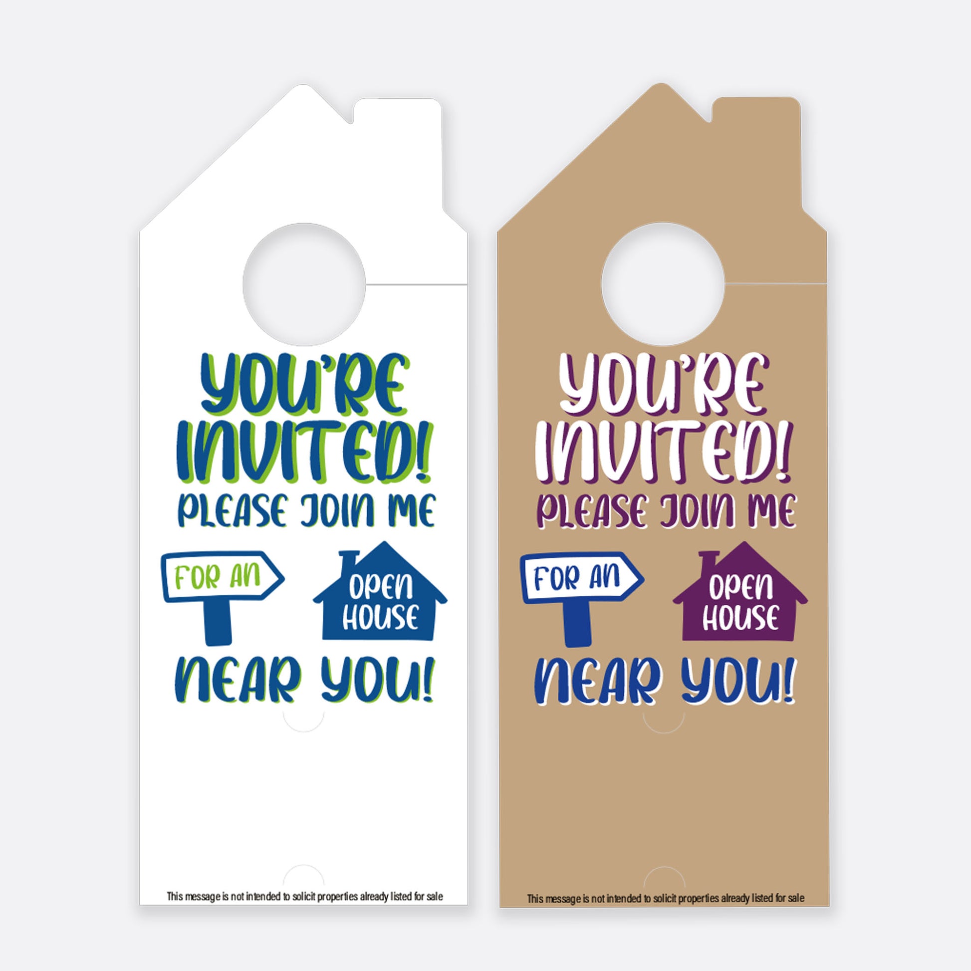 Transform your real estate marketing with our striking door hangers, designed exclusively for realtors. Make your listings pop and capture attention with our high-quality, eye-catching designs. Perfect for driving leads and leaving a lasting impression, our door hangers are your go-to tool for effective neighborhood outreach.